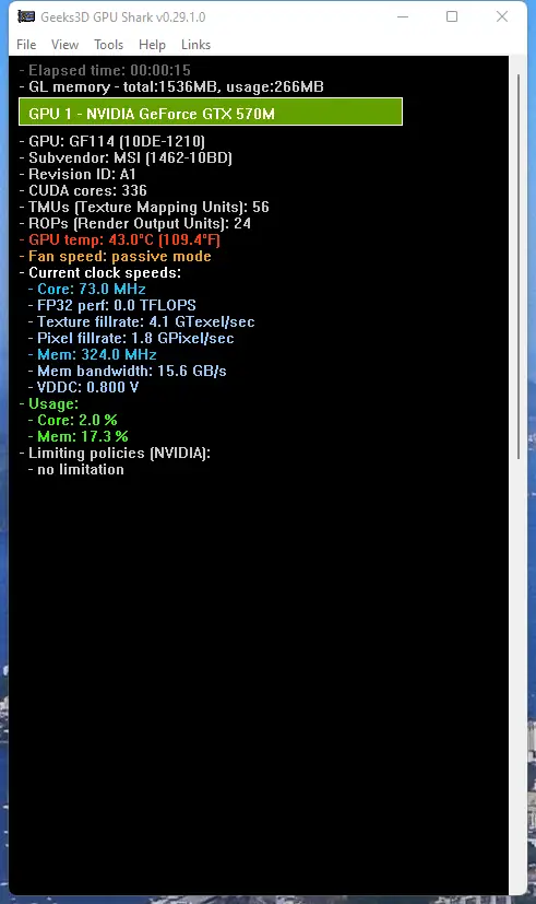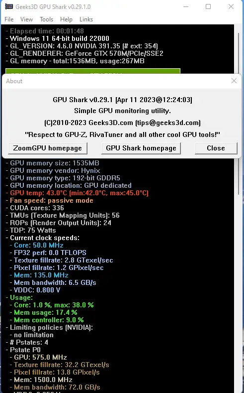 GPU Shark представляет собой легковесное приложение, разработанное для контроля за состоянием графического процессора в реальном времени. Утилита основана на библиотеке ZoomGPU, что обеспечивает стабильное получение данных с видеокарт от NVIDIA GeForce и AMD Radeon. Она не требует сложной настройки и запускается сразу после старта, предоставляя актуальную информацию о производительности и температурном режиме.
