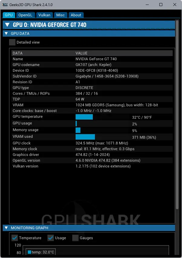 GPU Shark 2 — это современная утилита для мониторинга видеокарт, отображающая состояние GPU, VRAM, температуру, тактовые частоты, использование ресурсов и поддержку графических API. Программа предоставляет детальную информацию о графическом оборудовании и подходит как для обычных пользователей, так и для специалистов, тестирующих производительность системы. Интерфейс простой, данные обновляются в реальном времени, а приложение не требует установки.