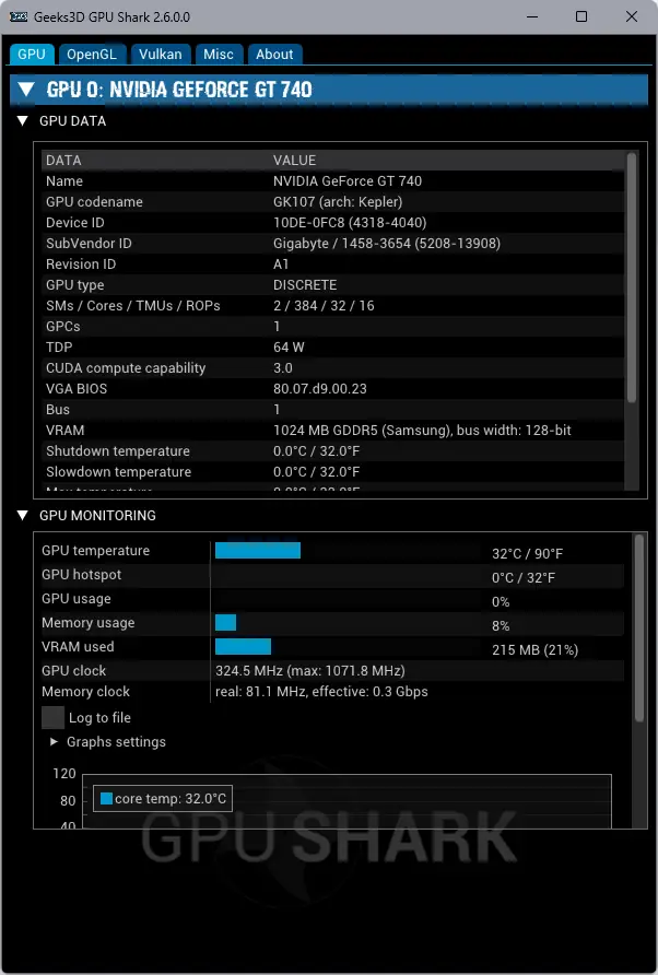 GPU Shark 2 — это информационно-мониторинговая утилита для видеокарт, предназначенная для отслеживания состояния графического процессора и VRAM. Программа отображает данные о температуре, загрузке, тактовых частотах и энергопотреблении, а также предоставляет информацию о поддержке графических API, включая OpenGL и Vulkan. Это незаменимый инструмент для тестирования и диагностики производительности GPU в реальном времени.