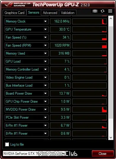 - Отображение текущих, базовых и разогнанных частот графического ядра и видеопамяти.