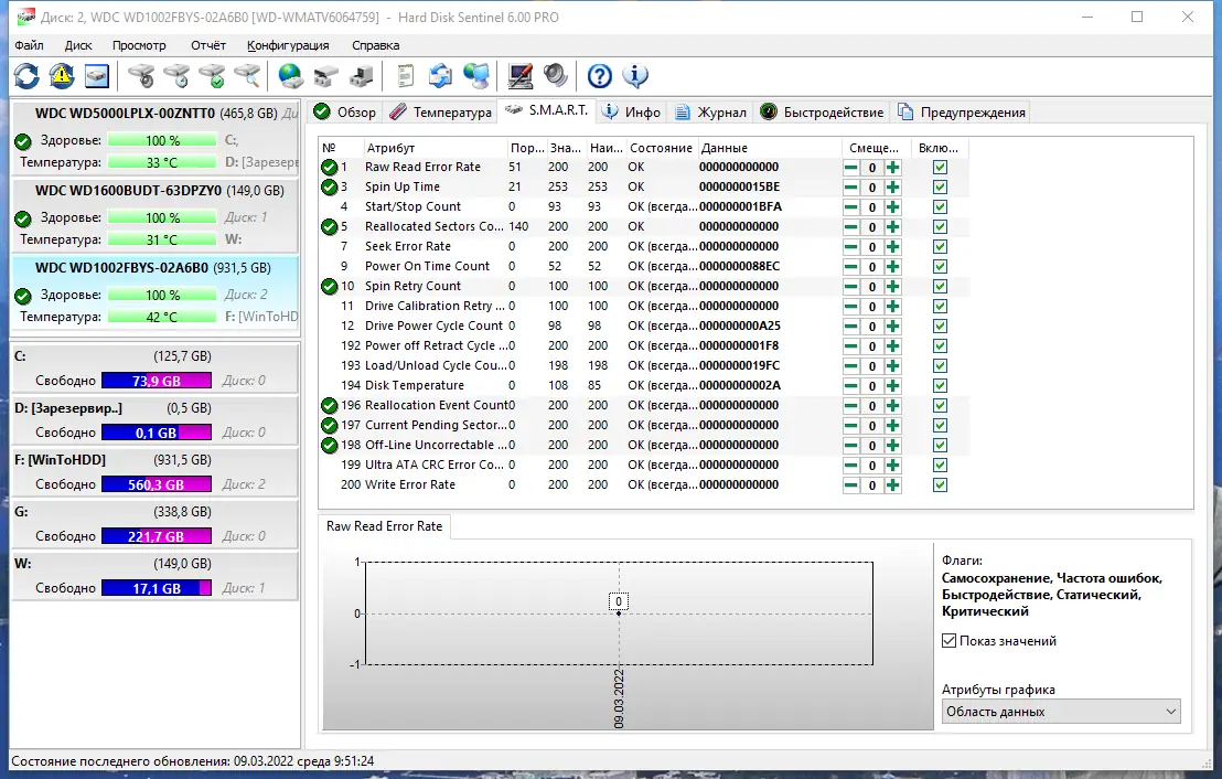 - Интерпретирует данные S.M.A.R.T. в понятный процентный показатель работоспособности.