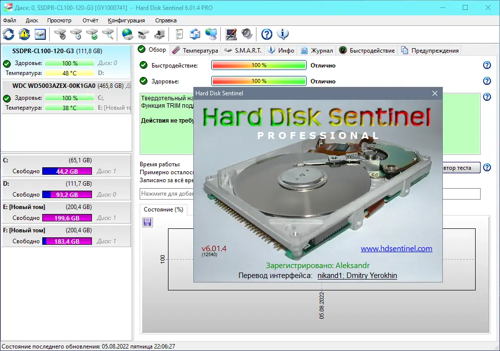 Hard Disk Sentinel — программа для мониторинга состояния жёстких дисков и твердотельных накопителей, обеспечивающая раннее обнаружение возможных сбоев. С её помощью можно отслеживать температуру, производительность, S.M.A.R.T.-параметры и общее здоровье накопителей в реальном времени. Инструмент помогает предотвратить потерю данных, своевременно оповещая о критических изменениях в работе дисков.