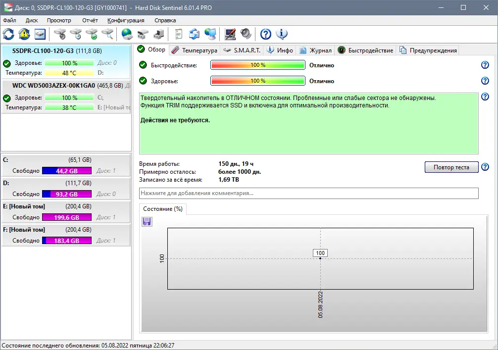 Программа способна выявить признаки потенциального отказа накопителя задолго до его физического выхода из строя.