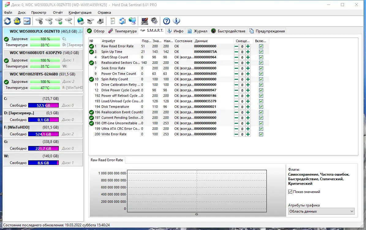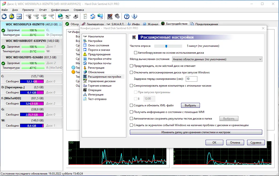 - Точная диагностика состояния дисков с использованием S.M.A.R.T. и реальных тестов производительности