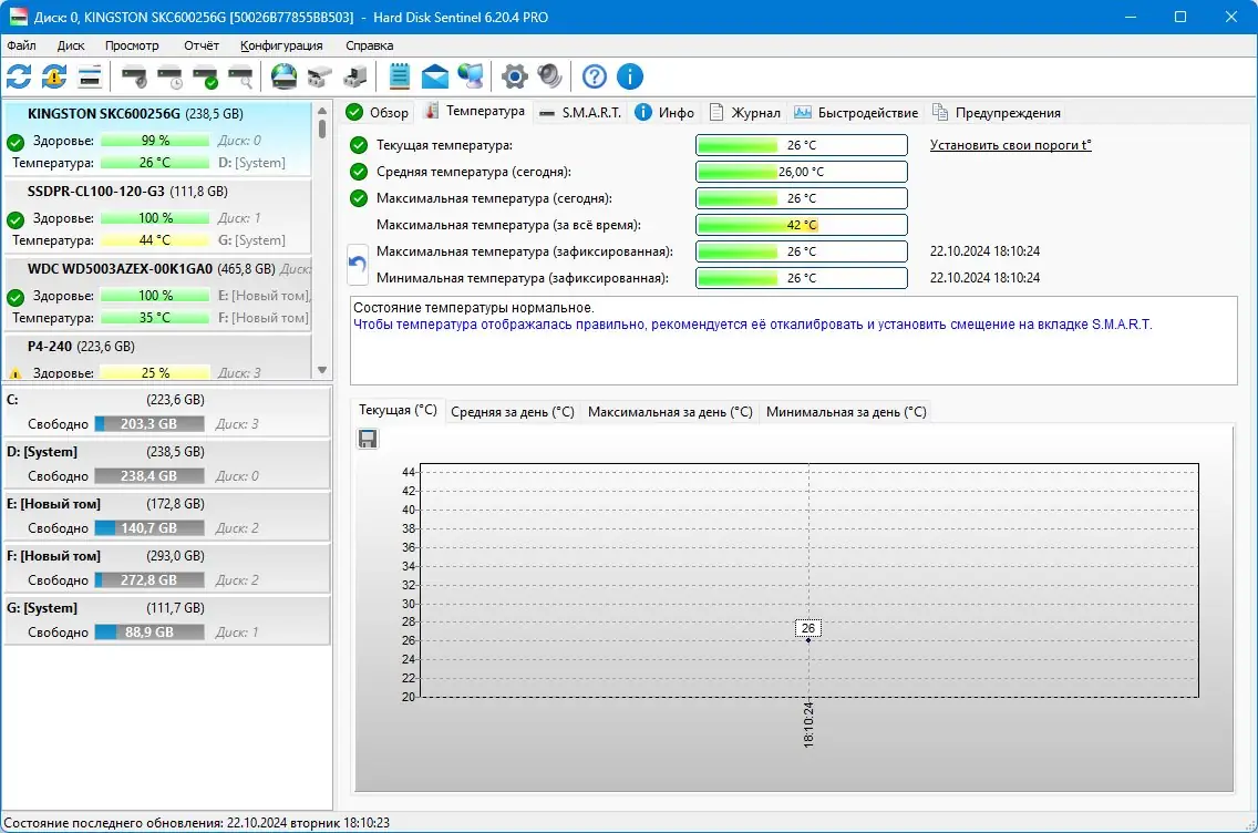 - Высокая точность анализа состояния дисков на основе S.M.A.R.T. и температурных данных.