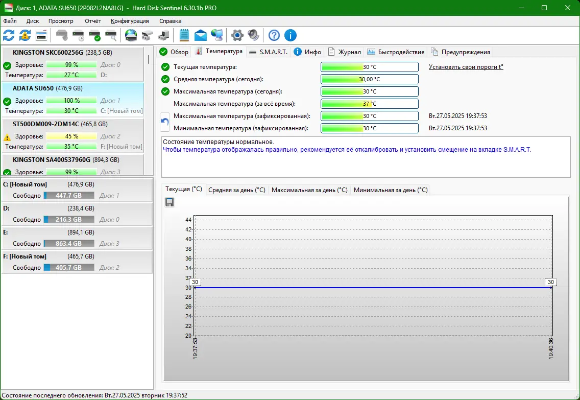 - Точная диагностика состояния через анализ S.M.A.R.T. и температурных данных.