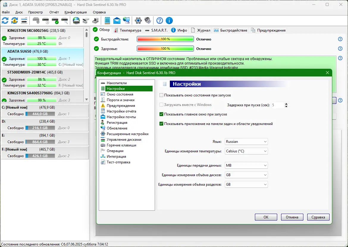 Работа с Hard Disk Sentinel