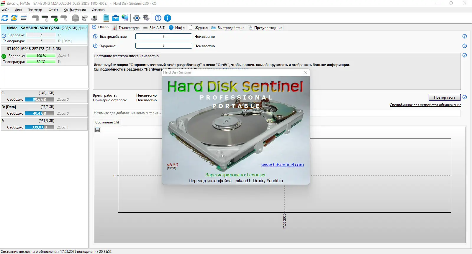Hard Disk Sentinel — это мощная утилита для мониторинга состояния жёстких дисков и твердотельных накопителей, обеспечивающая надёжный контроль за их работоспособностью. Программа отслеживает температуру, S.M.A.R.T.-параметры, производительность и общее здоровье накопителей в режиме реального времени. Благодаря постоянному анализу она способна предупредить о возможных сбоях до того, как произойдёт потеря данных.