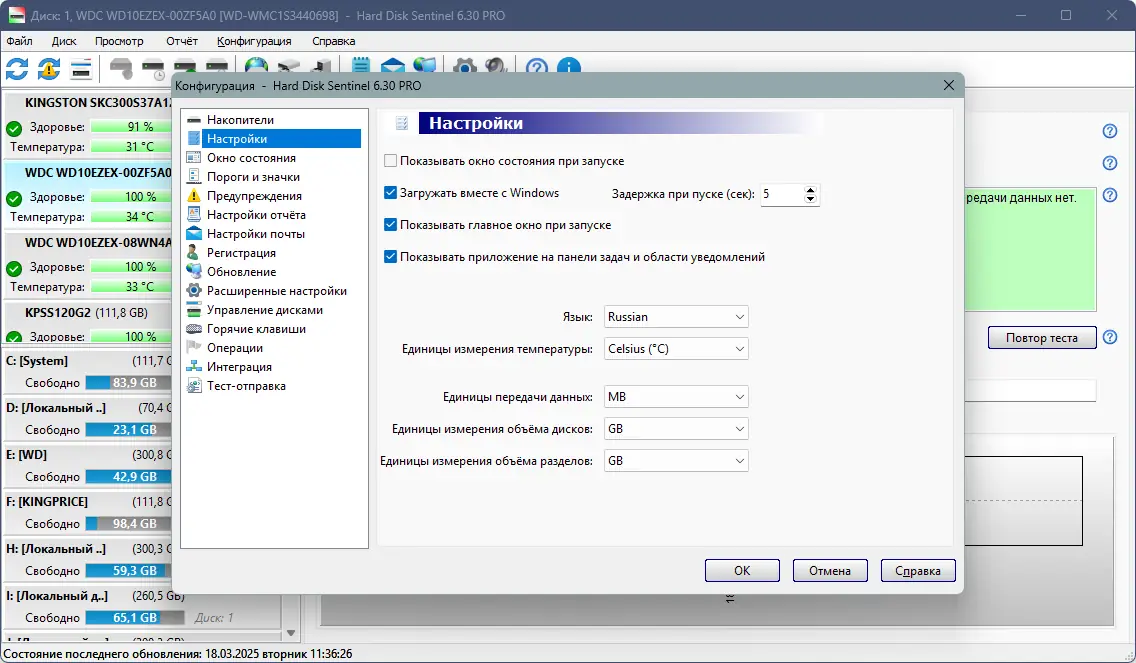 - Точная диагностика состояния HDD и SSD с использованием S.M.A.R.T.