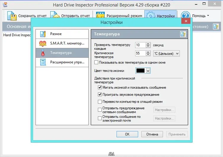 После запуска программа автоматически определяет все подключенные жесткие диски и начинает их анализ. Интерфейс отображает текущее состояние каждого накопителя в виде процентного значения — чем выше показатель, тем надежнее диск. Пользователь может вручную инициировать проверку, настроить интервалы автоматического сканирования, а также задать порог срабатывания оповещений. При достижении критического уровня программа выводит всплывающее уведомление и может запустить резервное копирование. Поддерживаются тихие режимы установки и портативный запуск без инсталляции.