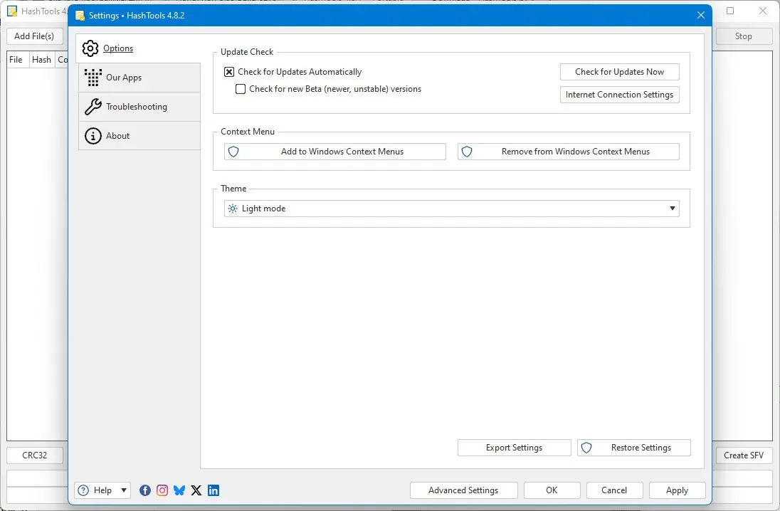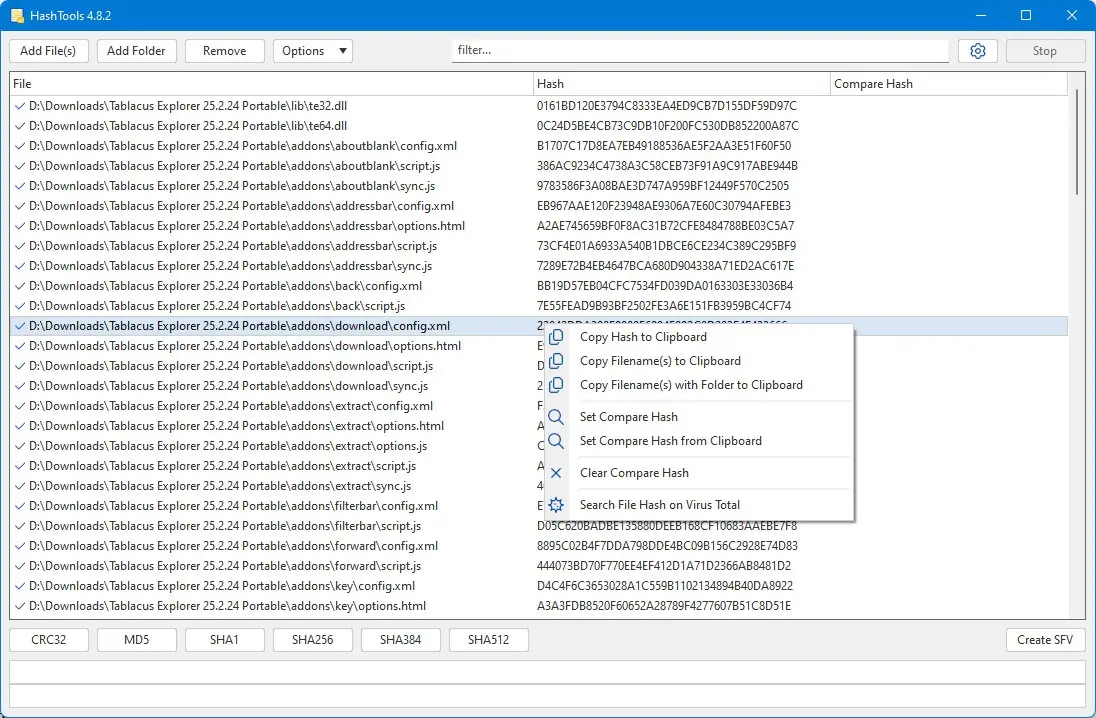 HashTools — это компактная и эффективная утилита для вычисления и проверки контрольных хэш-сумм файлов. Программа поддерживает популярные алгоритмы шифрования, включая CRC32, MD5, SHA1, SHA256, SHA384, SHA512 и формат SFV, обеспечивая высокую точность при верификации целостности данных. Подходит как для одиночных файлов, так и для пакетной обработки.