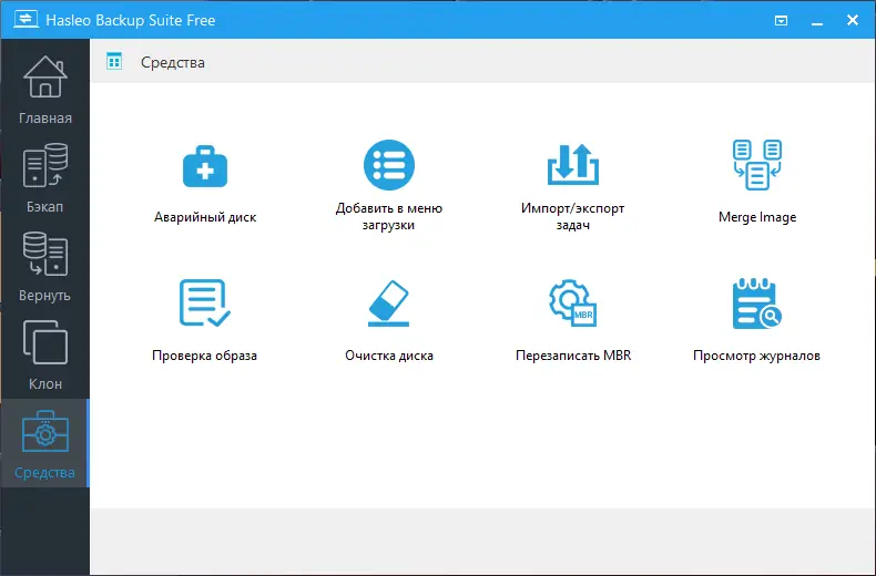 - Поддержка резервного копирования системы, дисков и разделов с возможностью последующего восстановления.