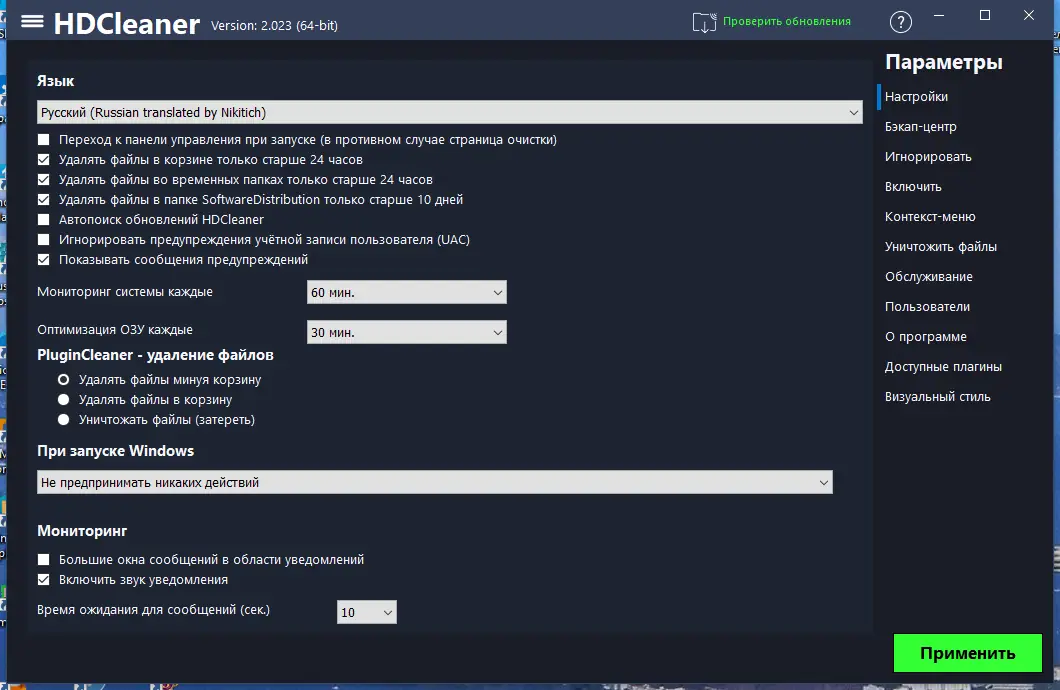 Интерфейс HDCleaner минималистичен и интуитивно понятен, что делает его доступным даже для начинающих пользователей.