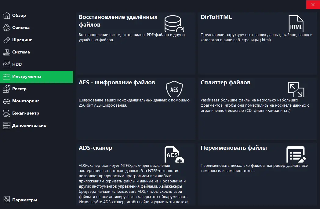 - Встроенные инструменты для анализа дискового пространства и выявления мусора.