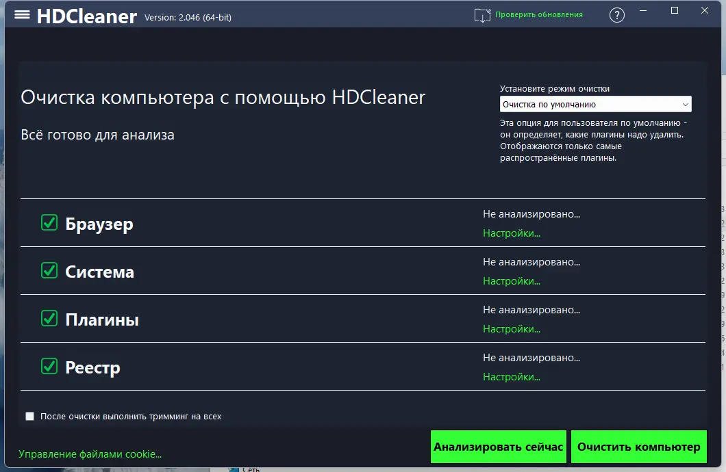 Работа с HDCleaner