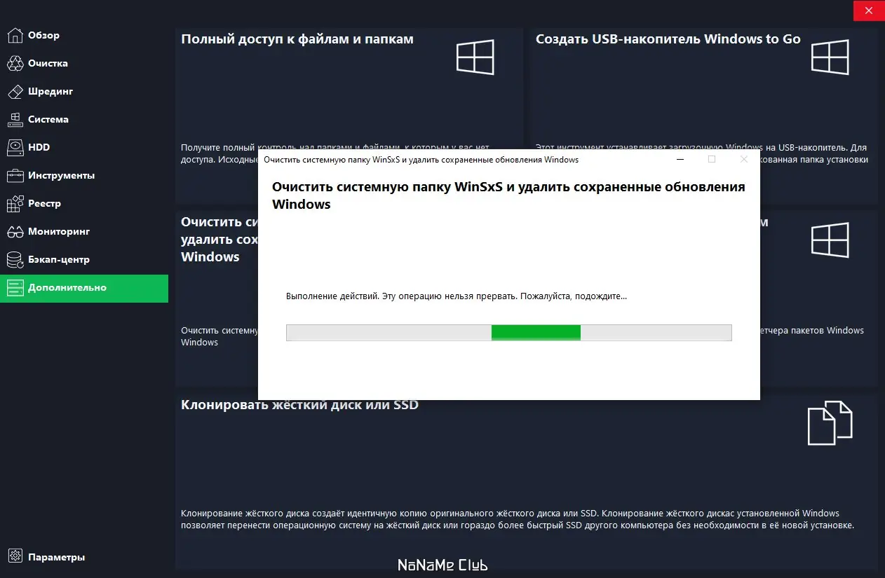 - Поддерживается анализ дискового пространства для выявления объёмных и неиспользуемых файлов.