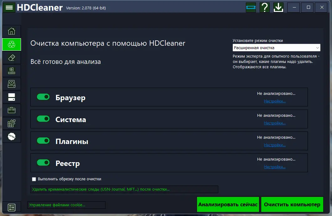 HDCleaner — это многофункциональная утилита для очистки компьютера, разработанная немецким программистом Kurt Zimmermann. Программа предлагает комплексные инструменты для оптимизации системы, включая очистку реестра, удаление временных файлов, дефрагментацию дисков и управление автозагрузкой. Бесплатное решение сочетает в себе эффективность и простоту, конкурируя по функционалу даже с платными аналогами.