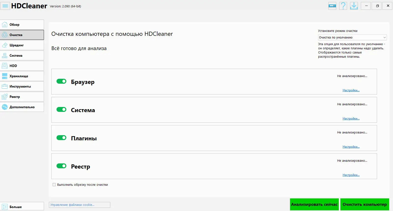 Работа с HDCleaner