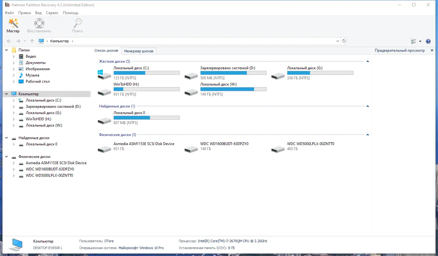 Программа Hetman Partition Recovery предназначена для восстановления удалённых файлов, повреждённых разделов и данных с отформатированных или недоступных накопителей. Она эффективно работает с жёсткими дисками, USB-флешками, картами памяти и другими устройствами, поддерживая файловые системы NTFS, FAT и их разновидности. Утилита использует комбинацию продвинутых алгоритмов для поиска и возврата информации, даже если файловая таблица повреждена или разделы исчезли. Интерфейс интуитивно понятен, а встроенный мастер направляет пользователя на каждом этапе. Это мощное решение для тех, кто столкнулся с утратой данных по техническим или человеческим причинам.