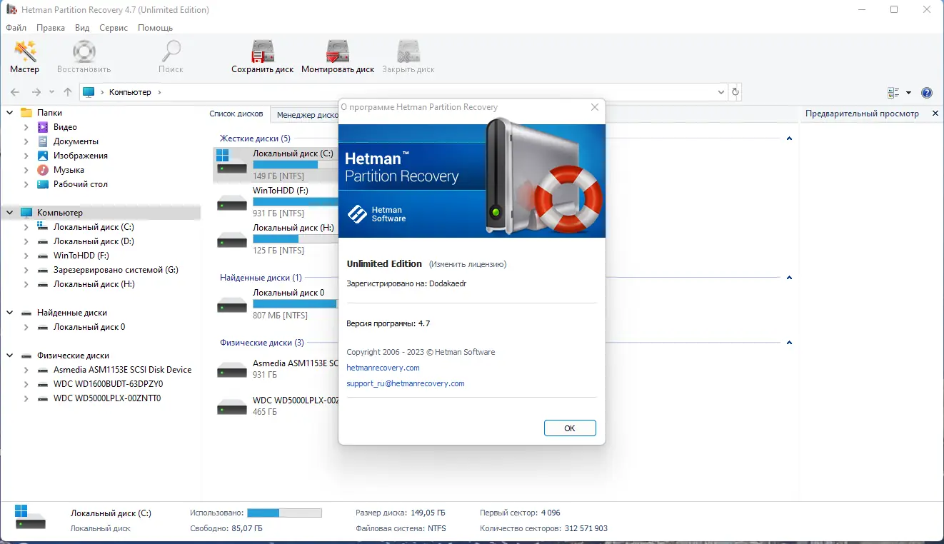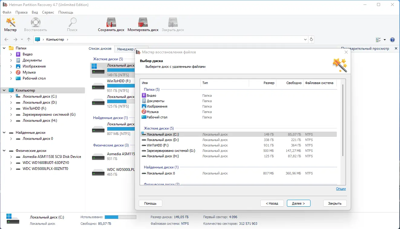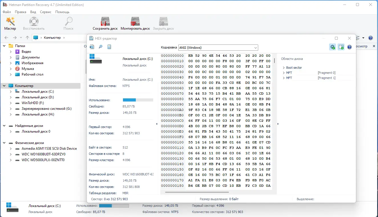 Hetman Partition Recovery — это мощная система восстановления данных, способная работать с физическими и виртуальными дисками, повреждёнными разделами и файловыми системами. Программа эффективно справляется с последствиями форматирования, сбоев операционной системы, действий вирусов и случайного удаления информации. Она поддерживает большинство современных носителей: от традиционных HDD и SSD до USB-флешек, карт памяти и виртуальных дисков VMware, VirtualBox и Hyper-V. Алгоритмы анализа позволяют восстанавливать файлы даже при серьёзных повреждениях логической структуры диска.