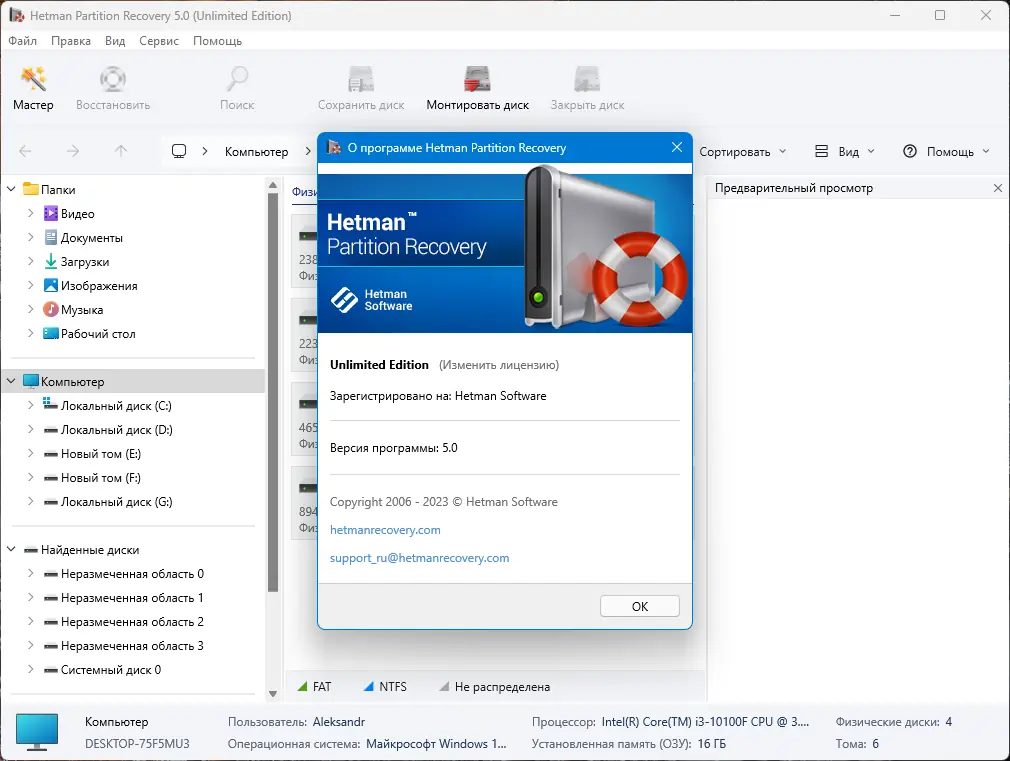 Hetman Partition Recovery — это мощное программное обеспечение, разработанное для восстановления утерянных данных с различных типов носителей. Она эффективно справляется с задачами восстановления после форматирования, повреждения файловой системы, вирусных атак или сбоев оборудования. Программа поддерживает как физические, так и виртуальные диски, включая образы виртуальных машин и гипервизоров.