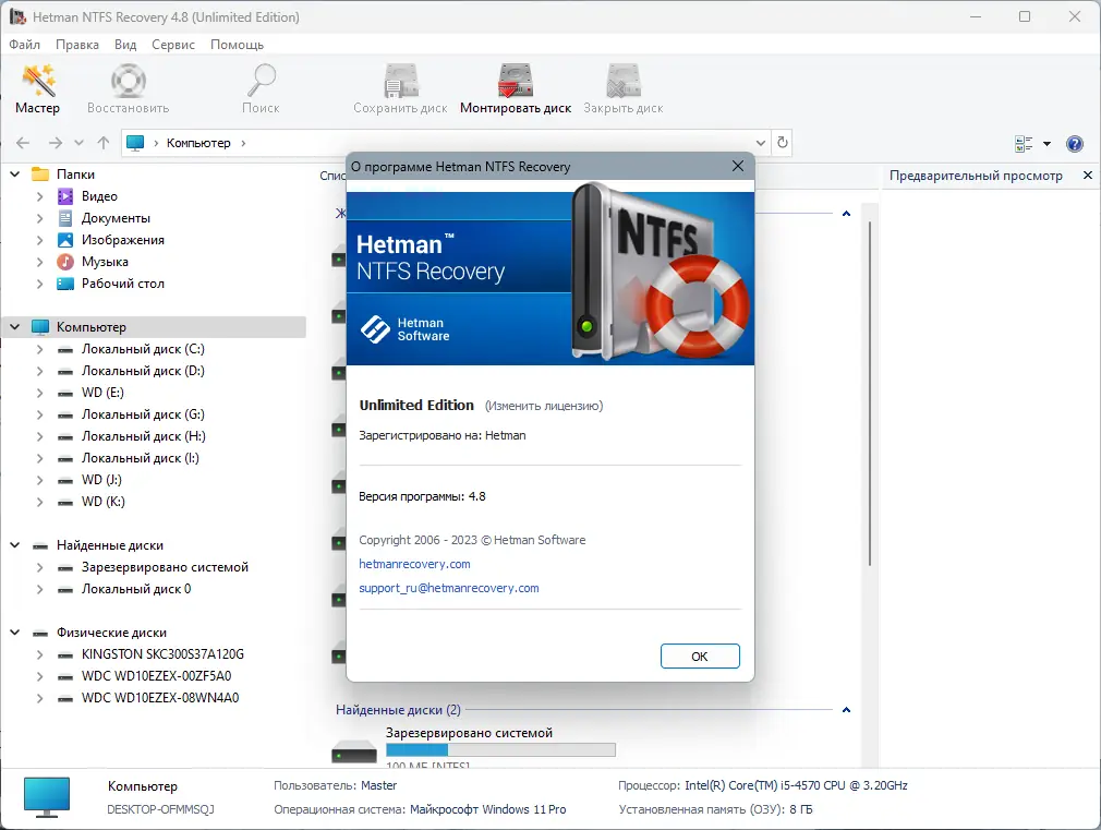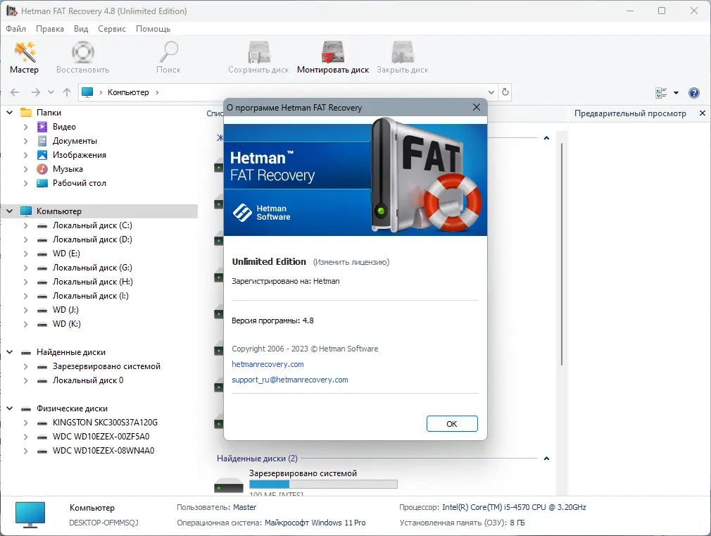 Работа с Hetman Recovery Software