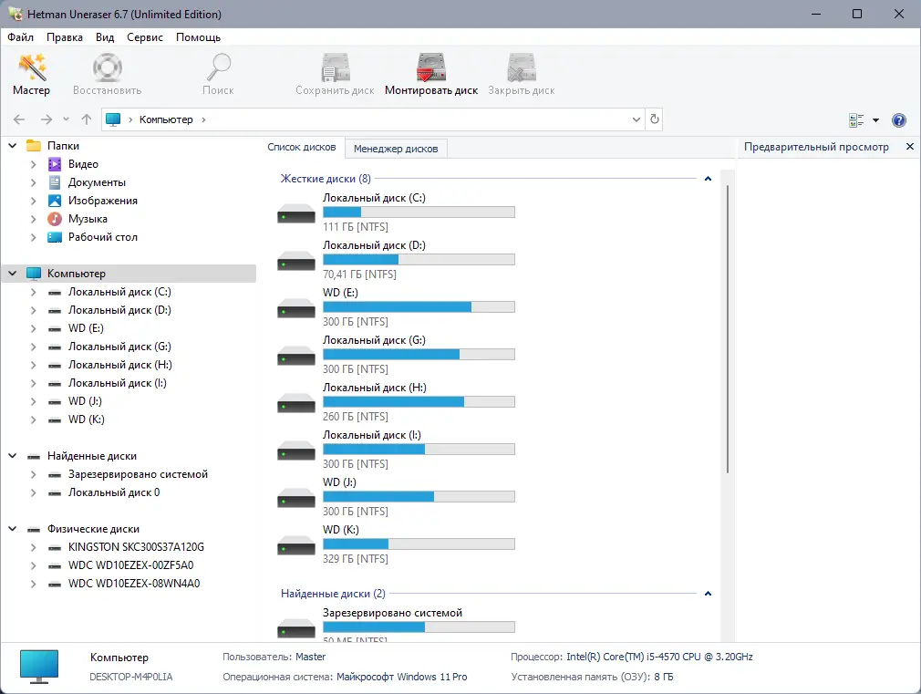 Программа Hetman Uneraser предназначена для восстановления удалённых файлов с жёстких дисков, карт памяти, USB-флешек и других носителей. Утилита поддерживает широкий спектр форматов и работает интуитивно — интерфейс напоминает проводник Windows, где можно легко найти и восстановить нужные данные.