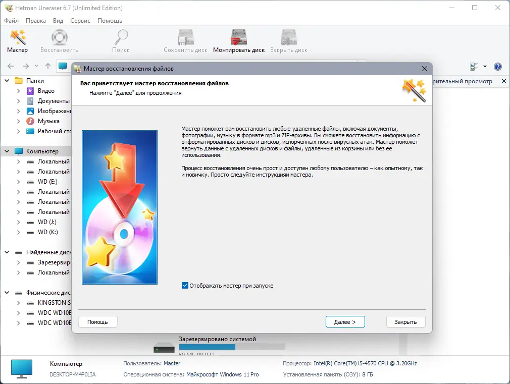 Работа с Hetman Uneraser