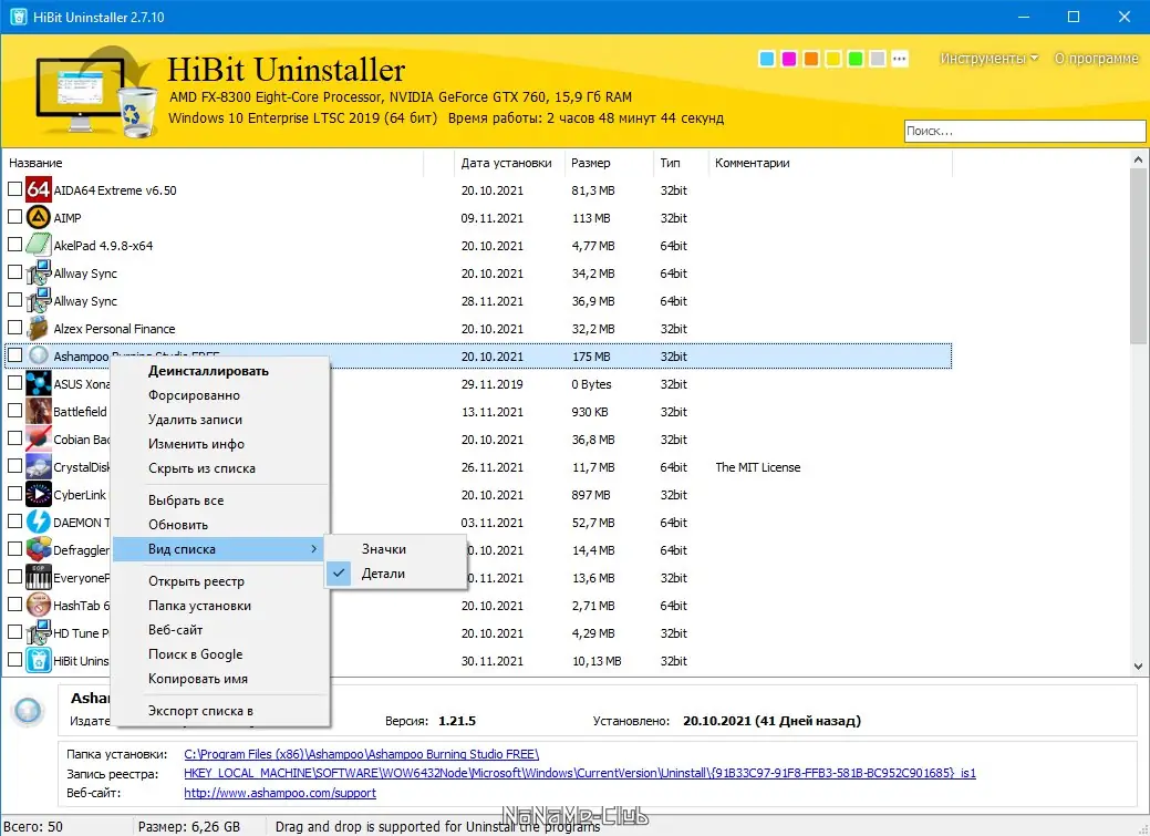 HiBit Uninstaller — это мощная утилита для полного и безопасного удаления программ в операционной системе Windows. Программа эффективно справляется с деинсталляцией как стандартных приложений, так и встроенных компонентов системы, включая приложения из магазина Microsoft Store. После основного удаления проводится глубокое сканирование реестра и файловой системы для поиска остаточных файлов и записей, что позволяет поддерживать систему в чистоте и улучшать её производительность.