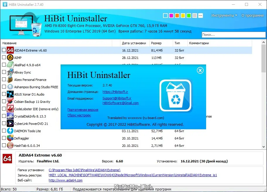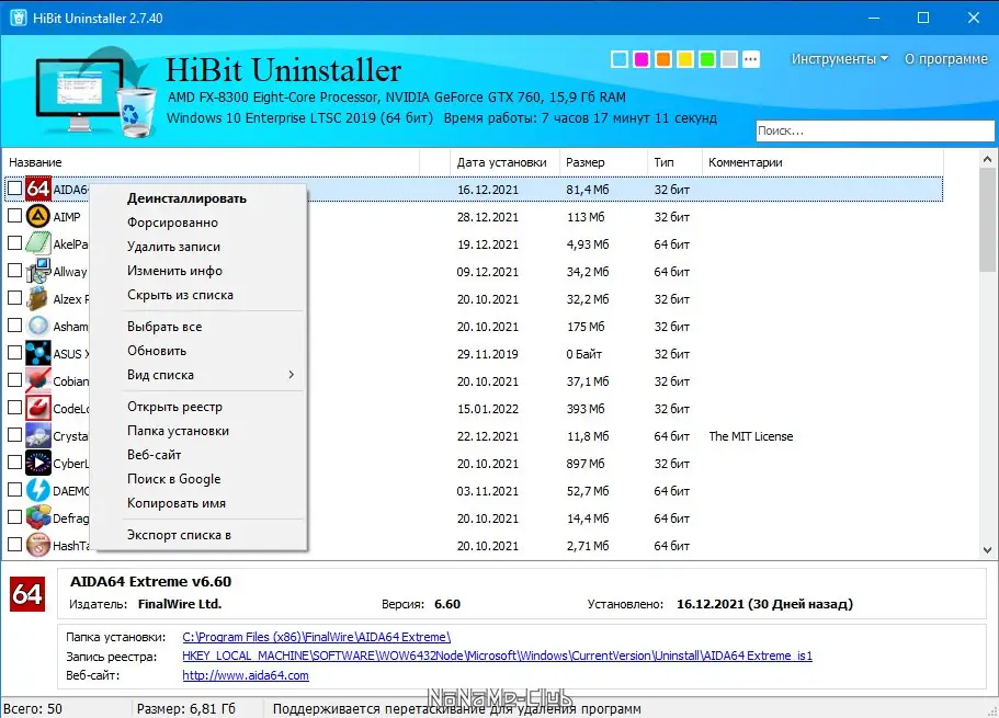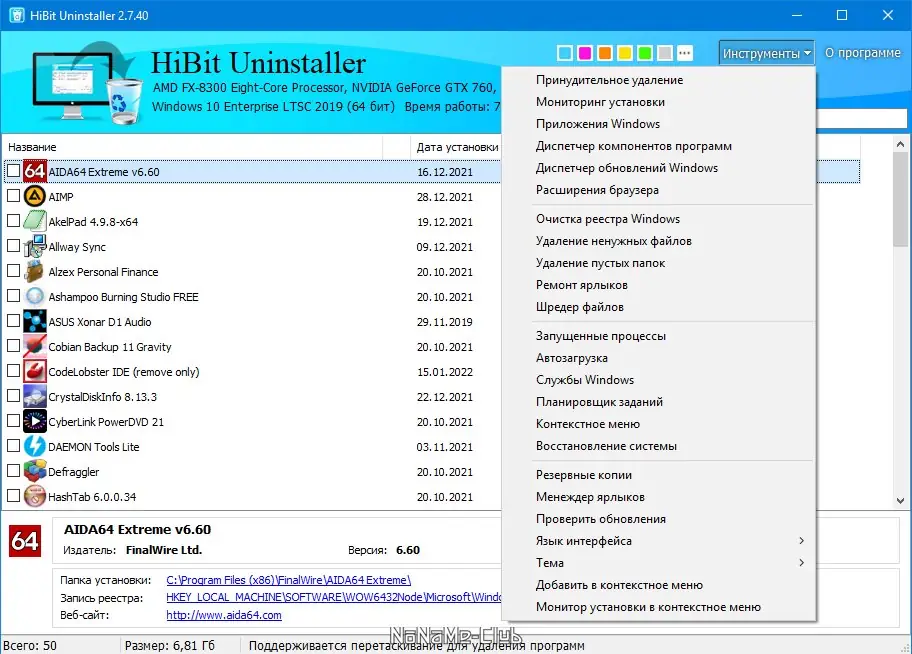Работа с HiBit Uninstaller