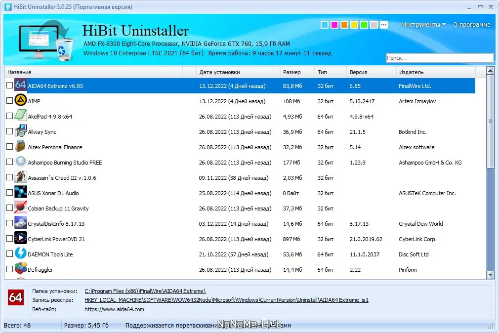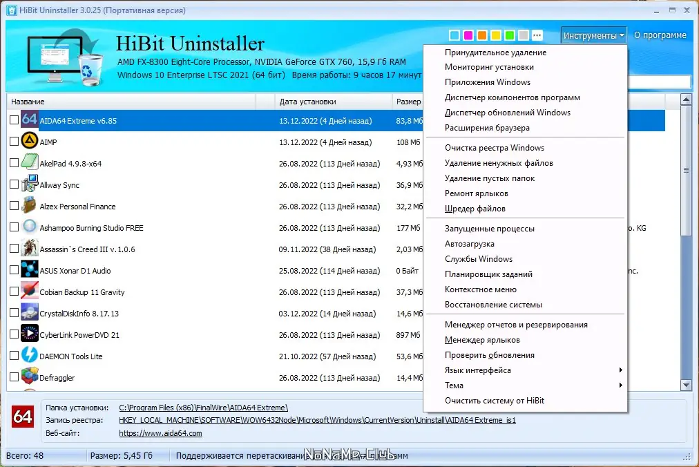 Работа с HiBit Uninstaller