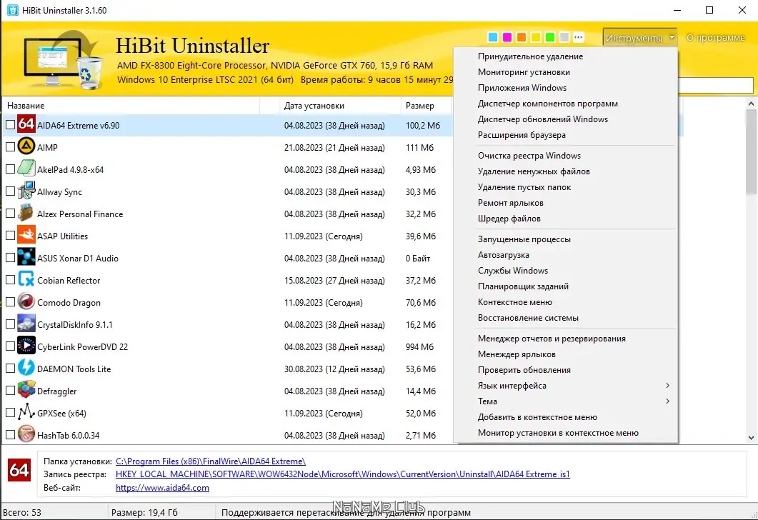 HiBit Uninstaller — это мощная утилита для полного удаления программ и оптимизации системы на компьютерах под управлением Windows. Программа не только удаляет установленные приложения, но и проводит глубокую очистку остатков в реестре и файловой системе, обеспечивая чистоту и стабильность работы операционной среды.