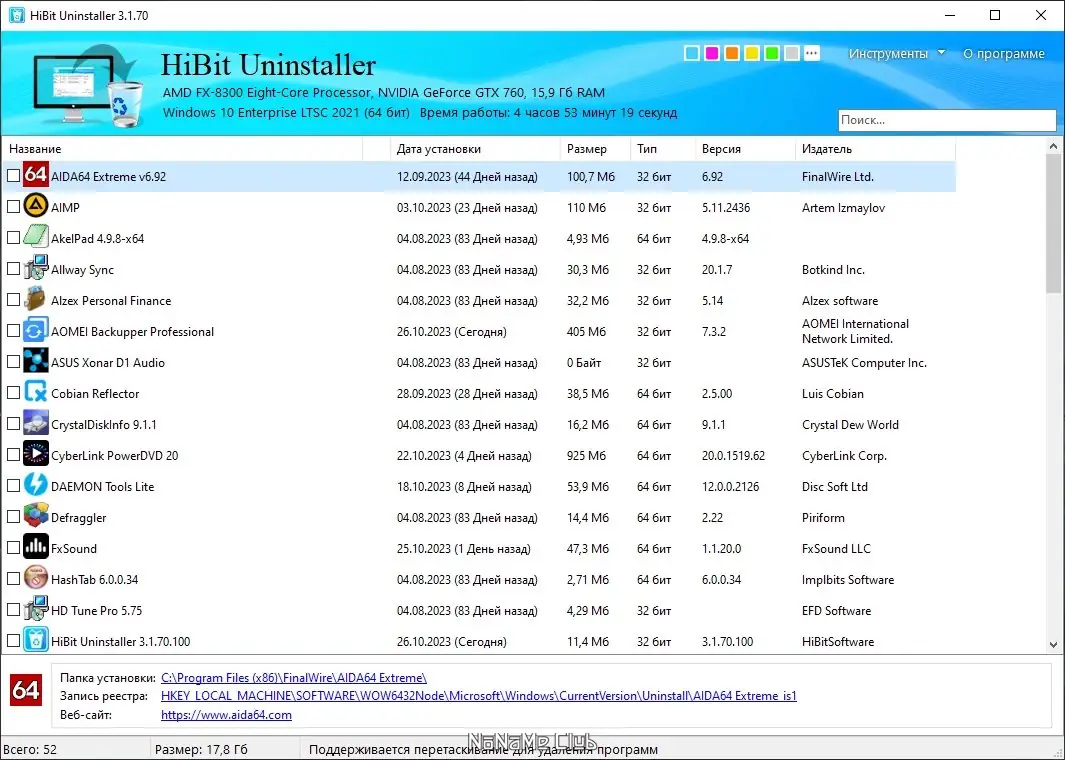 HiBit Uninstaller предлагает широкий функционал, при этом оставаясь компактным и быстрым в работе. Одним из главных преимуществ является сочетание простого интерфейса с продвинутыми возможностями, что делает утилиту универсальной. Она поддерживает как быстрое удаление, так и глубокую очистку, а встроенные инструменты позволяют не использовать дополнительные программы для оптимизации.