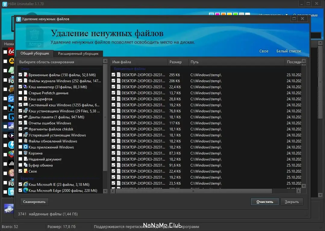 - Обеспечивает глубокое сканирование на наличие остаточных данных после деинсталляции.