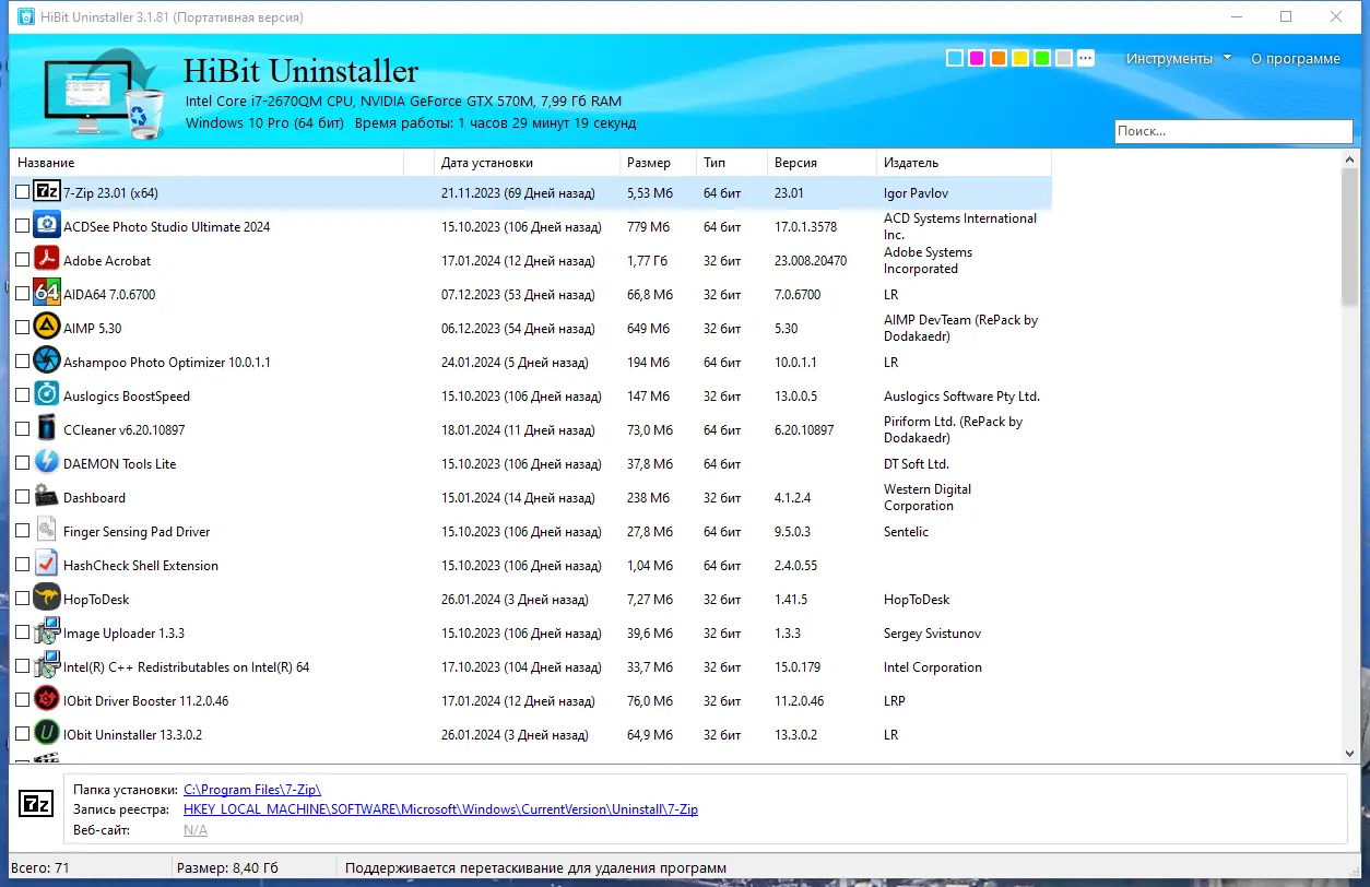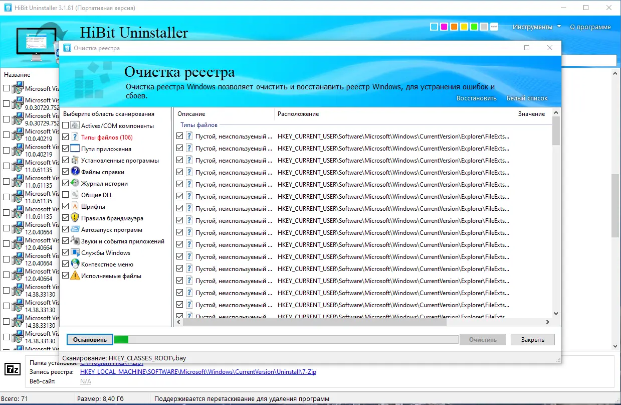 HiBit Uninstaller — это мощная утилита для полного удаления программ и оптимизации системы, сочетающая простой интерфейс с расширенными функциями очистки, включая работу с приложениями Windows Store, реестром и автозагрузкой. Программа эффективно удаляет ненужные приложения, находит и уничтожает остаточные файлы и записи, обеспечивая стабильность и высокую производительность операционной системы.