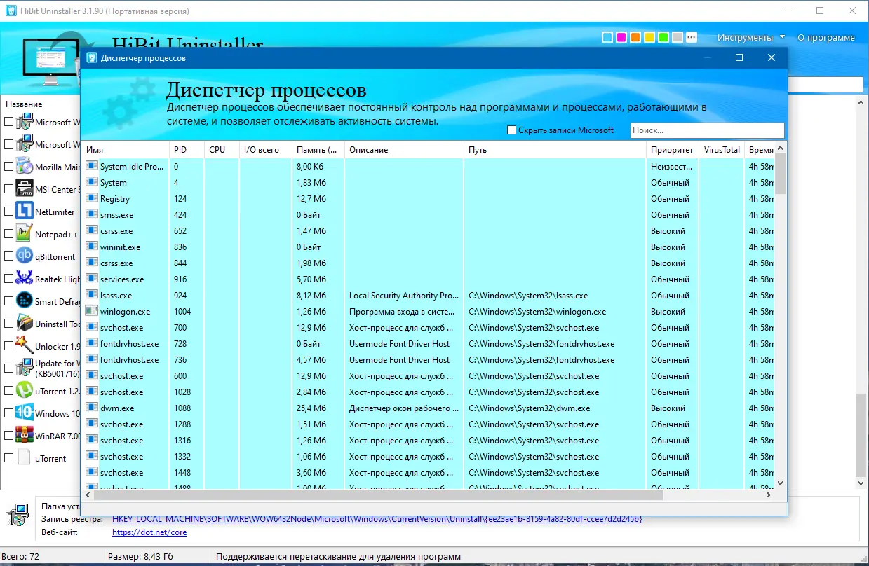 HiBit Uninstaller разработана как альтернатива стандартному деинсталлятору Windows, предлагая расширенные функции и более высокую эффективность при удалении программ. Утилита поддерживает как классические приложения, так и современные UWP-приложения из магазина Microsoft, обеспечивая полное очищение системы от следов деинсталлированного ПО. Интерфейс программы интуитивно понятен и не требует специальных знаний для использования. Она подходит как обычным пользователям, так и системным администраторам, которым важна чистота и стабильность системы.