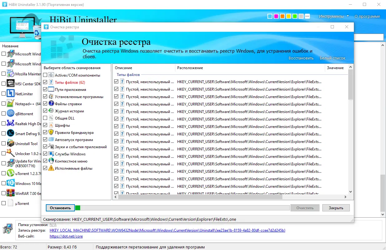 HiBit Uninstaller — это мощная утилита для полного и безопасного удаления программ в операционной системе Windows с дополнительными инструментами оптимизации и очистки системы. Программа быстро устраняет ненужные приложения, включая встроенные компоненты Windows Store, и проводит глубокое сканирование на остатки после деинсталляции.
