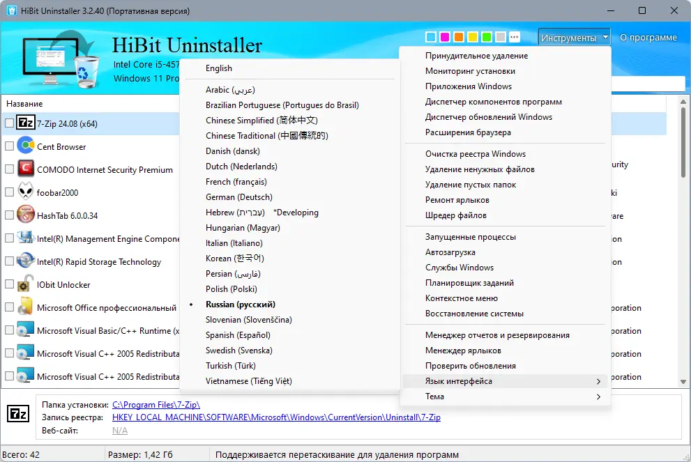 Работа с HiBit Uninstaller