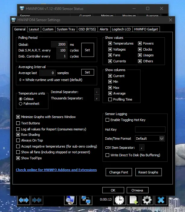 После запуска программа автоматически начинает сканирование всех доступных аппаратных компонентов. Пользователь может выбрать режим отображения: краткая сводка или детализированный обзор с разбивкой по категориям. Все данные структурированы и отображаются в удобной древовидной форме, что упрощает навигацию. Доступ к показаниям датчиков осуществляется в отдельной вкладке, где отображаются текущие, минимальные и максимальные значения температуры, загрузки ЦП и других параметров. Результаты можно сохранить в отчет или скопировать в буфер обмена для дальнейшего анализа. Поддерживается настройка автоматического запуска при старте системы и выбор режима сворачивания в системный трей.