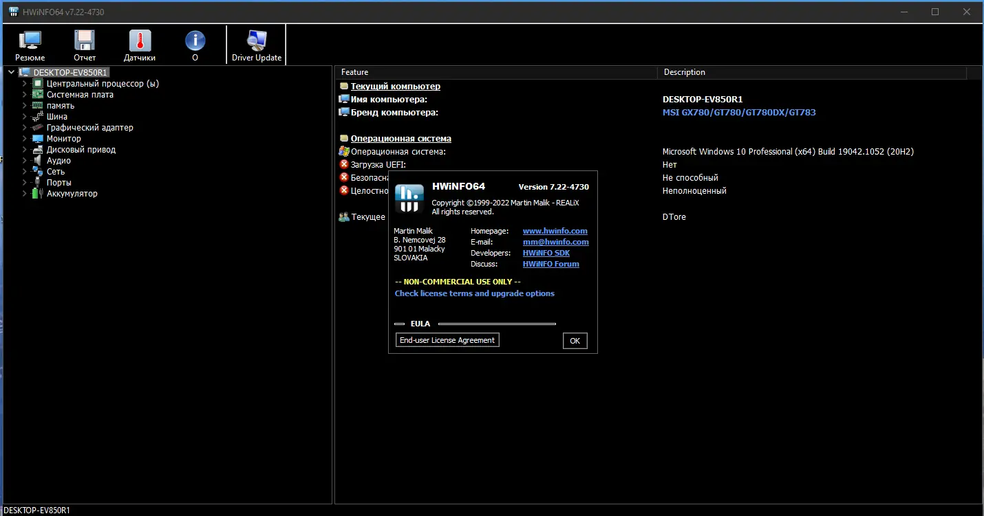 HWiNFO демонстрирует высокую стабильность и точность при определении параметров оборудования. Интерфейс интуитивно понятен, а функционал охватывает широкий спектр задач — от диагностики до долгосрочного мониторинга. Программа не требует установки в portable-версии и совместима с различными версиями Windows. При этом она остаётся легковесной и не нагружает систему.