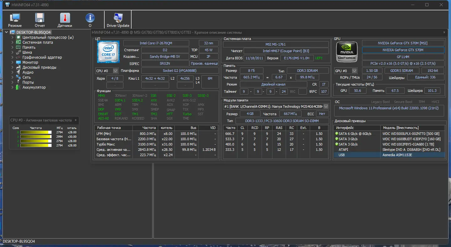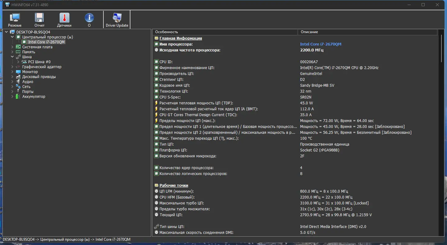 После запуска HWiNFO отображает основные сведения о системе в виде иерархического дерева, где каждый компонент раскрыт по категориям. Пользователь может выбрать режим отображения: сводка, сенсоры или детализированный просмотр. Данные обновляются динамически, а показания датчиков можно наблюдать в графическом виде или в числовом формате с указанием минимальных, максимальных и текущих значений.