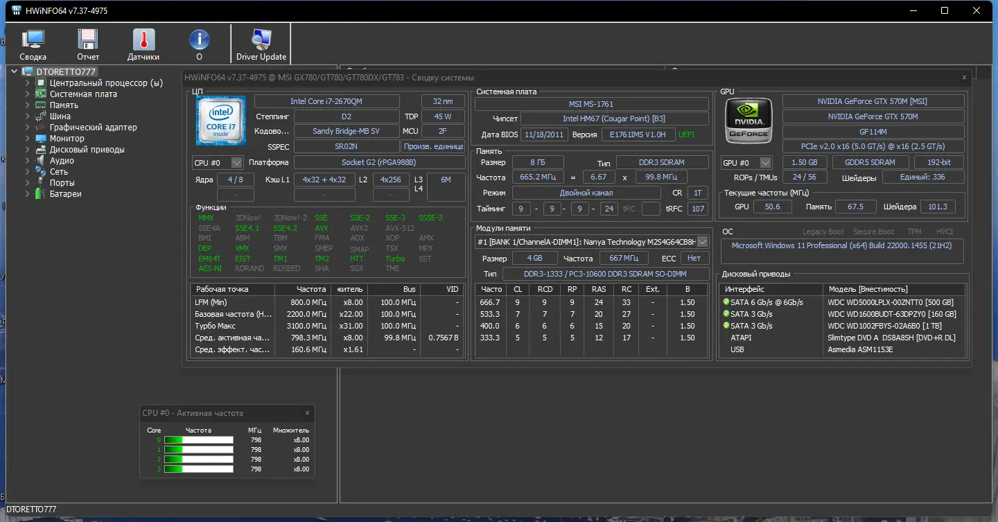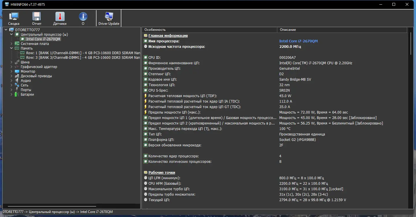 - Сбор данных о процессоре, материнской плате, видеокарте и других компонентах.