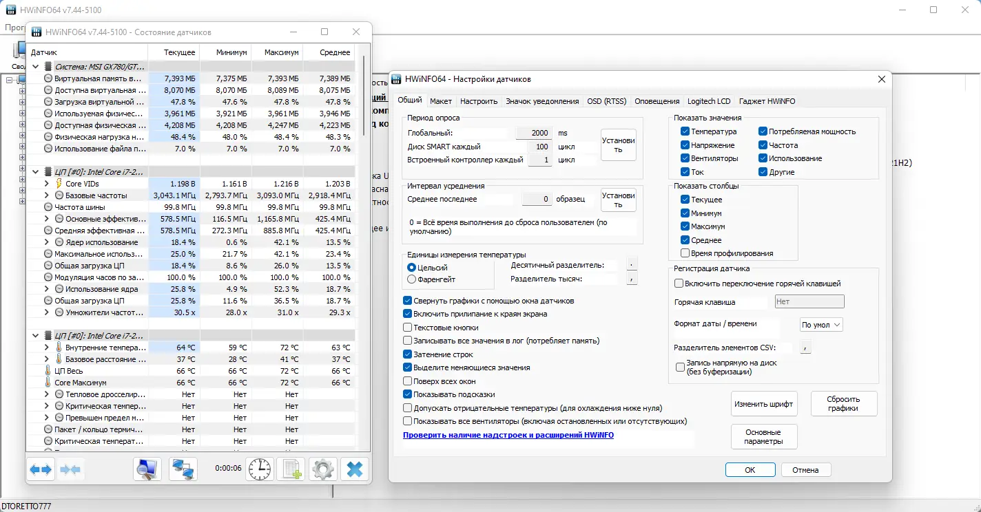 После запуска программы пользователь видит главное окно с древовидной структурой компонентов системы. Можно выбрать режим просмотра общей сводки или перейти к детальному мониторингу датчиков, где отображаются текущие, минимальные, максимальные и средние значения параметров. Данные обновляются в реальном времени, что позволяет отслеживать изменения при нагрузке на систему. Для удобства настройки предусмотрена возможность сворачивания окна в системный трей и автозапуск с операционной системой.