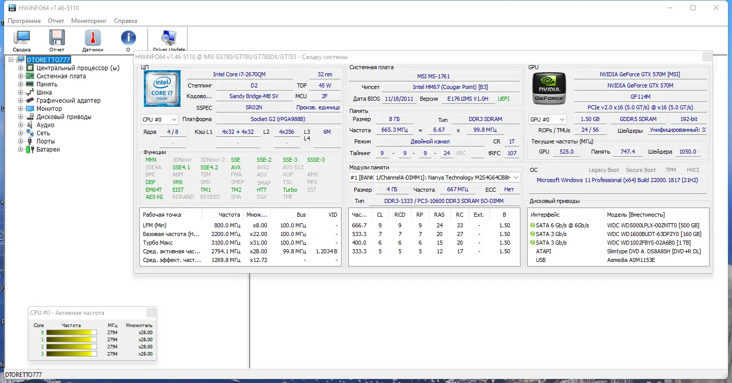 Работа с HWiNFO