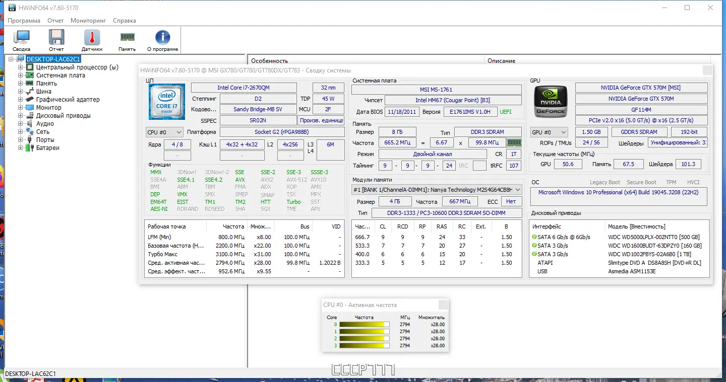 - Доступны портативные версии, не требующие установки, включая HWiNFO64 для 64-битных систем.