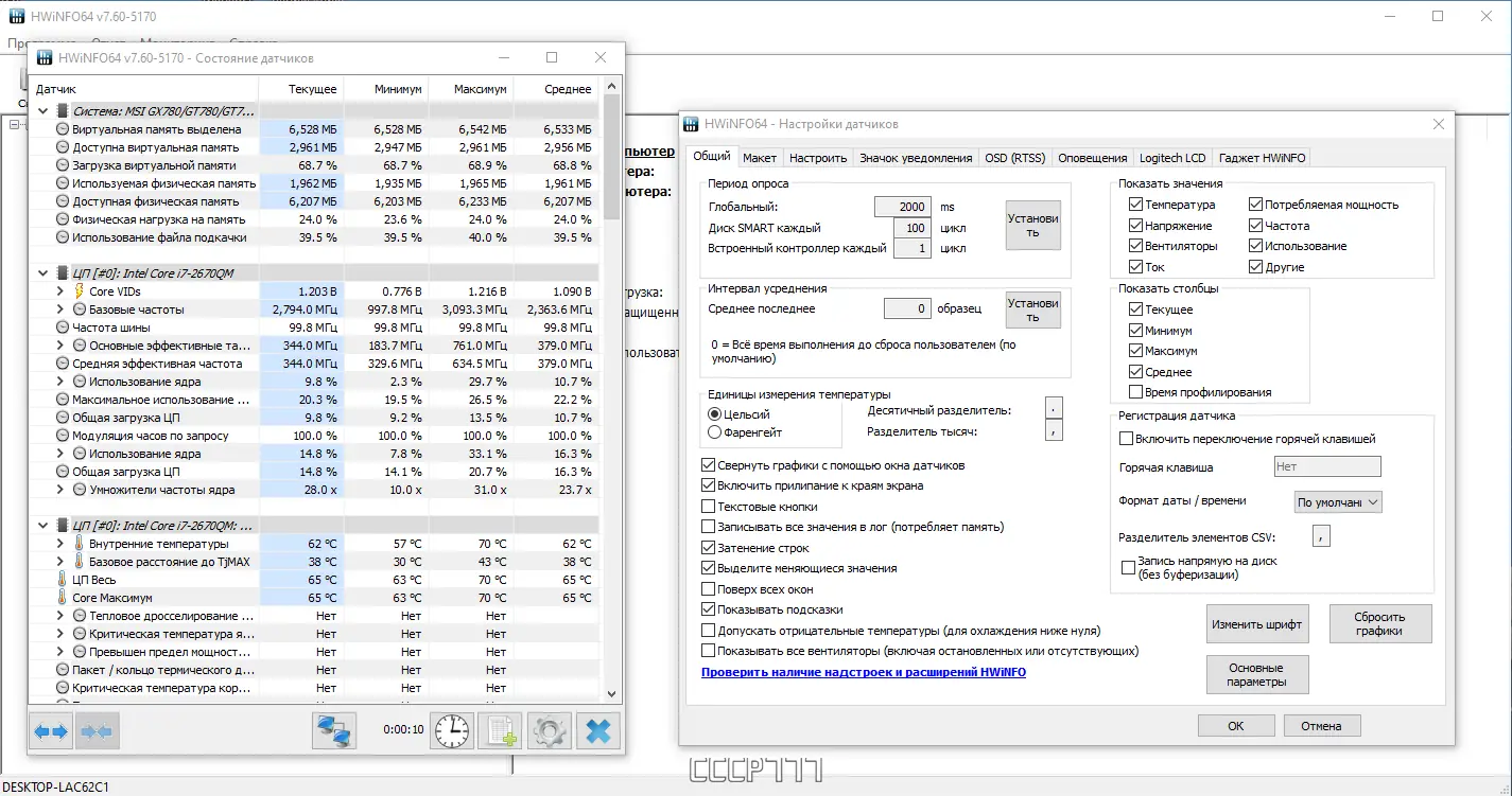 Работа с HWiNFO
