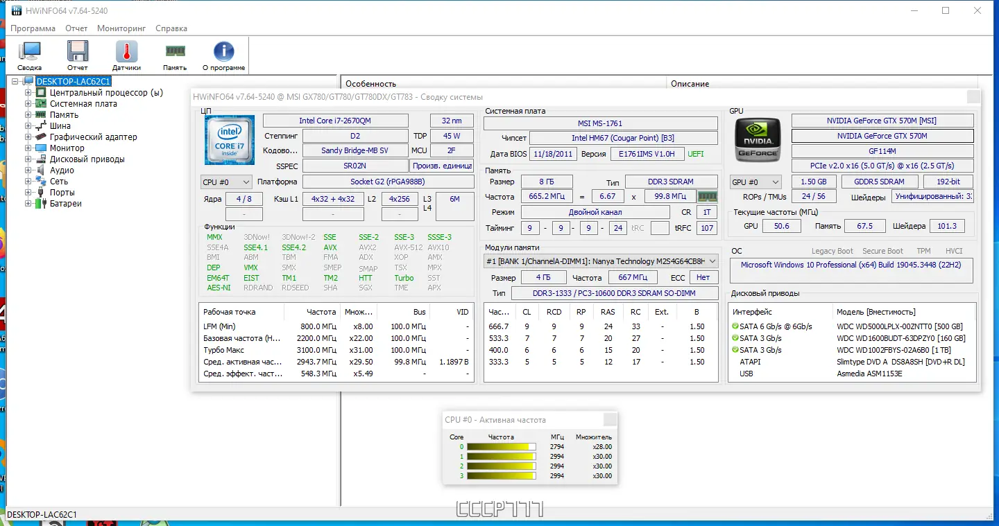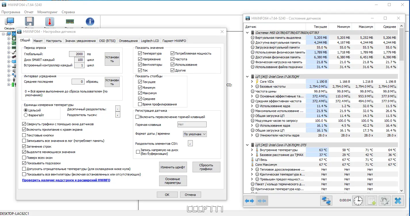 Работа с HWiNFO