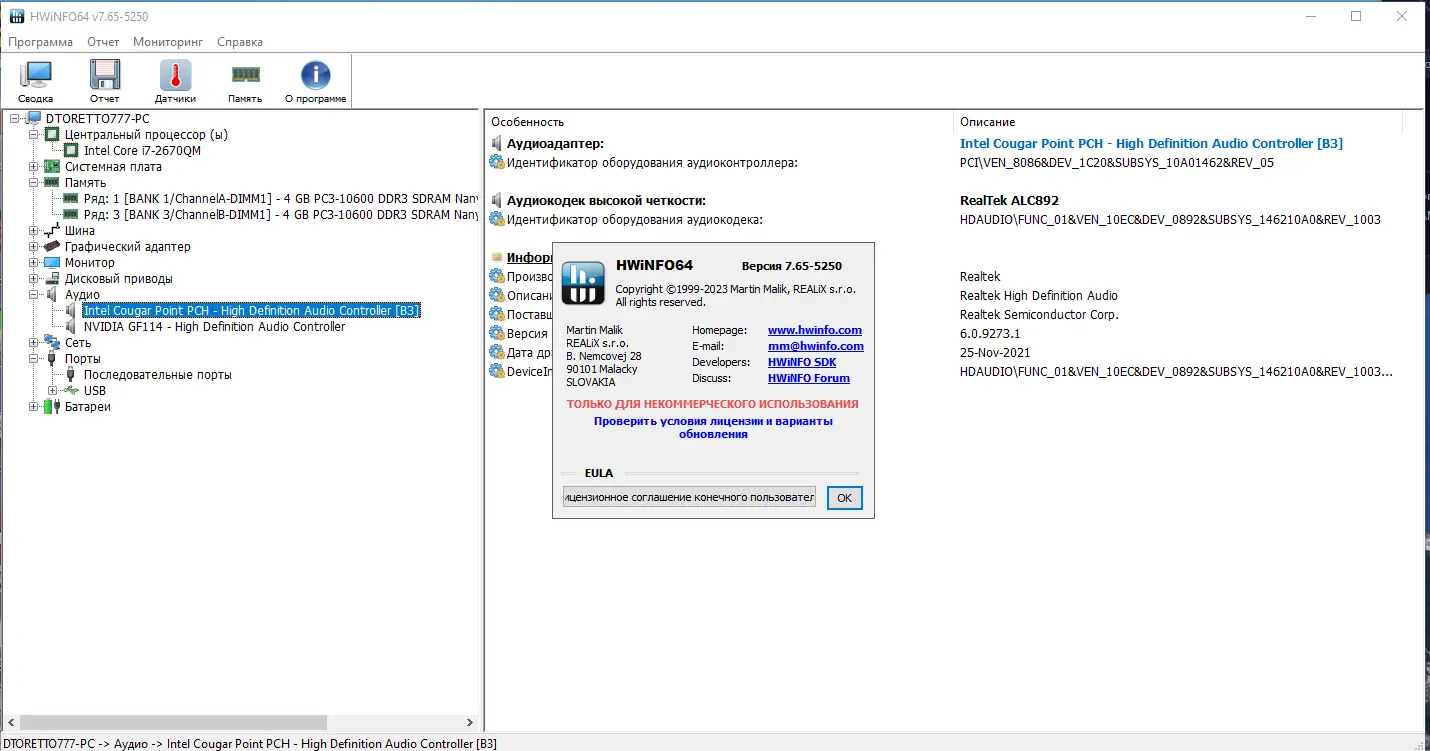HWiNFO — это системная утилита, предназначенная для сбора и анализа информации о «железе» компьютера. Она поддерживает широкий диапазон оборудования и позволяет отслеживать изменения в режиме реального времени. Программа подходит для диагностики неисправностей, оценки производительности и контроля за температурой компонентов. Она одинаково эффективно работает как на стационарных ПК, так и на ноутбуках под управлением Windows. Поддерживается архитектура как 32, так и 64 бит, что обеспечивает совместимость с большинством современных систем.