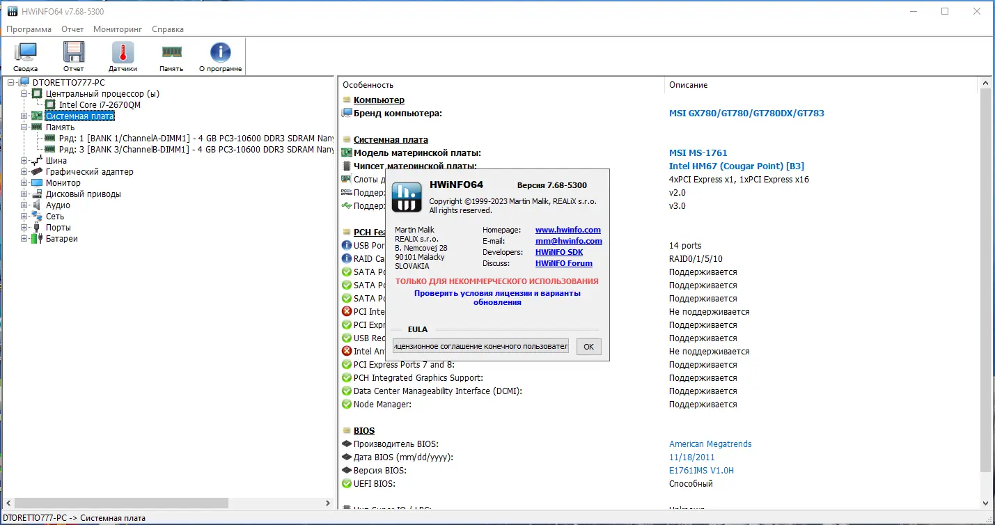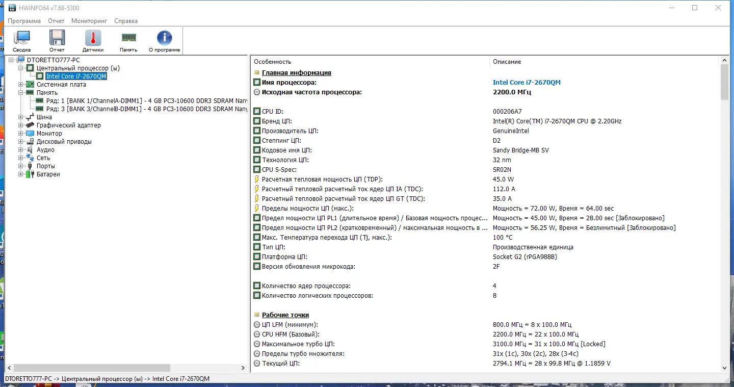- Сбор подробных данных о процессоре, материнской плате, видеокарте и других устройствах