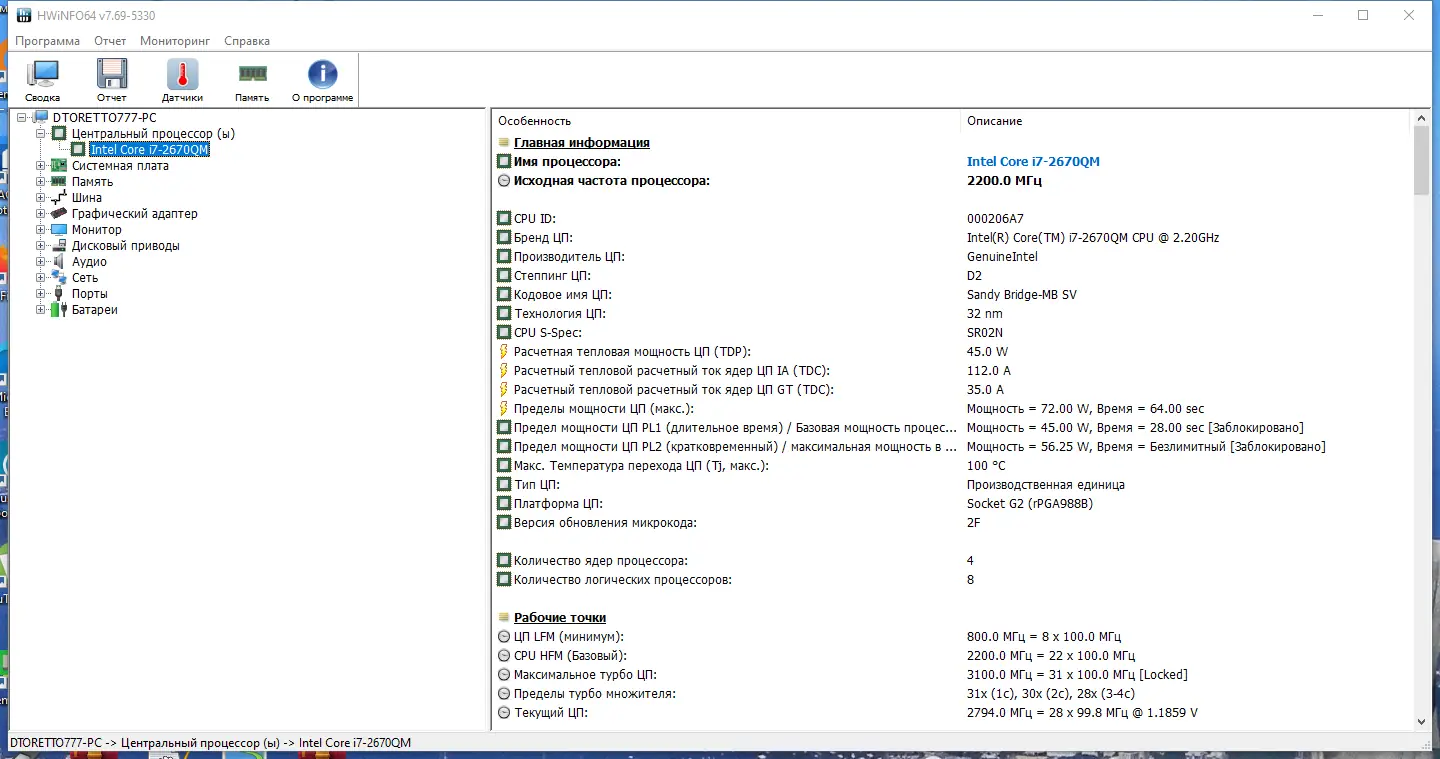 - Сбор подробных сведений о процессоре, материнской плате, видеокарте, памяти и других компонентах.